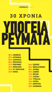 Τα Υπόγεια Ρεύματα γιορτάζουν τα 30 χρόνια τους με έναν νέο δίσκο, όπου διασκευάζουν αγαπημένα τους τραγούδια. Παράλληλα, ξεκινούν μια μεγάλη περιοδεία σε Ελλάδα & Κύπρο για να συναντήσουν παλιούς και νέους φίλους.