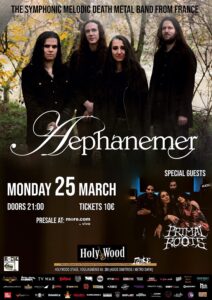 Στο πλαίσιο της δεύτερης headlining ευρωπαϊκής περιοδείας τους, οι Aephanemer (Melodic Death Metal, Napalm Records) από την Τουλούζη της Γαλλίας είναι στην ευχάριστη θέση να ανακοινώσουν μια αποκλειστική συναυλία στο HolyWood Stage, στην Αθήνα στις 25 Μαρτίου 2024!
