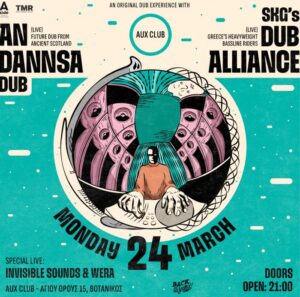 Από τα αρχαία highlands της Σκωτίας μέχρι τα bass-heavy dancefloors της σύγχρονης dub σκηνής, οι AN DANNSA DUB προσγειώνονται για πρώτη φορά στην Αθήνα για ένα δυναμικό live γεμάτο ένταση, ρυθμό και ατμόσφαιρα που καθηλώνει. Μαζί σε αυτό το εκρηκτικό double bill ο ένας και μοναδικός Ελέφαντας από τη Θεσσαλονίκη aka SKG’S DUB ALLIANCE για μία μοναδική γιορτή του dub ήχου!
