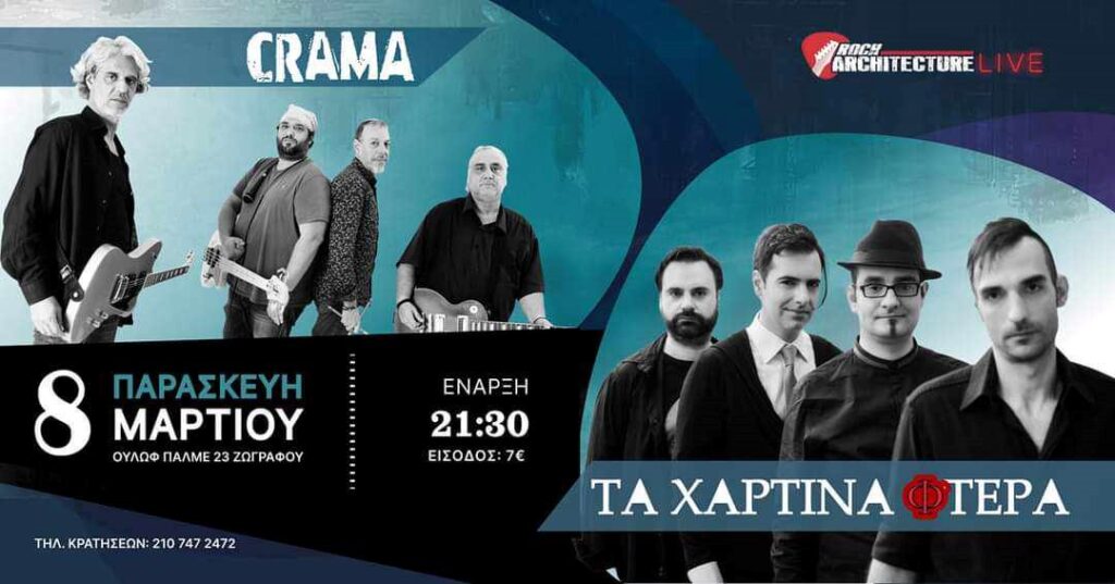 CRAMA ΚΑΙ ΤΑ ΧΑΡΤΙΝΑ ΦΤΕΡΑ Live @ Rock Architecture – Παρασκευή 8 Μαρτίου