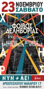 Το Σάββατο 23 Νοεμβρίου ο Φοίβος Δεληβοριάς εμφανίζεται στο ΝYN + ΑEI στο Ηράκλειο.